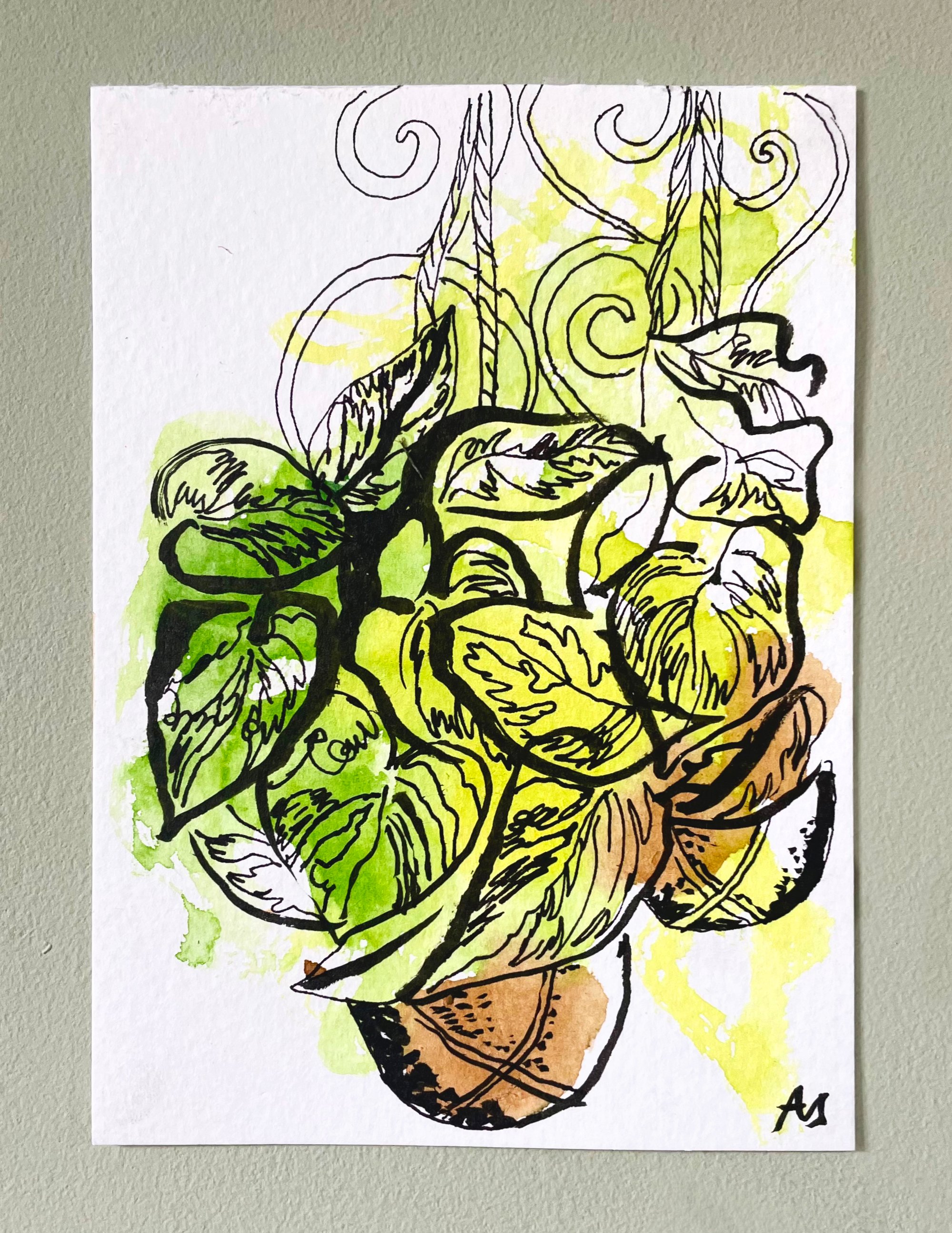 Watercolour on textured watercolour postcard. It is A6 in sixe (10.5 x 15cm) Packed in an eco cellophane bag, tissue paper and and a stiff board backed envelope.